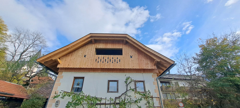 Bei dem Gebäude in der Mühlbachgasse in Hermagor wurde der Dachstuhl samt Kaltdach und Giebelwänden vollständig neu errichtet.